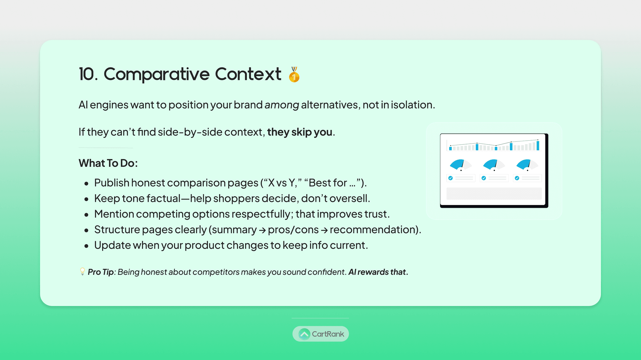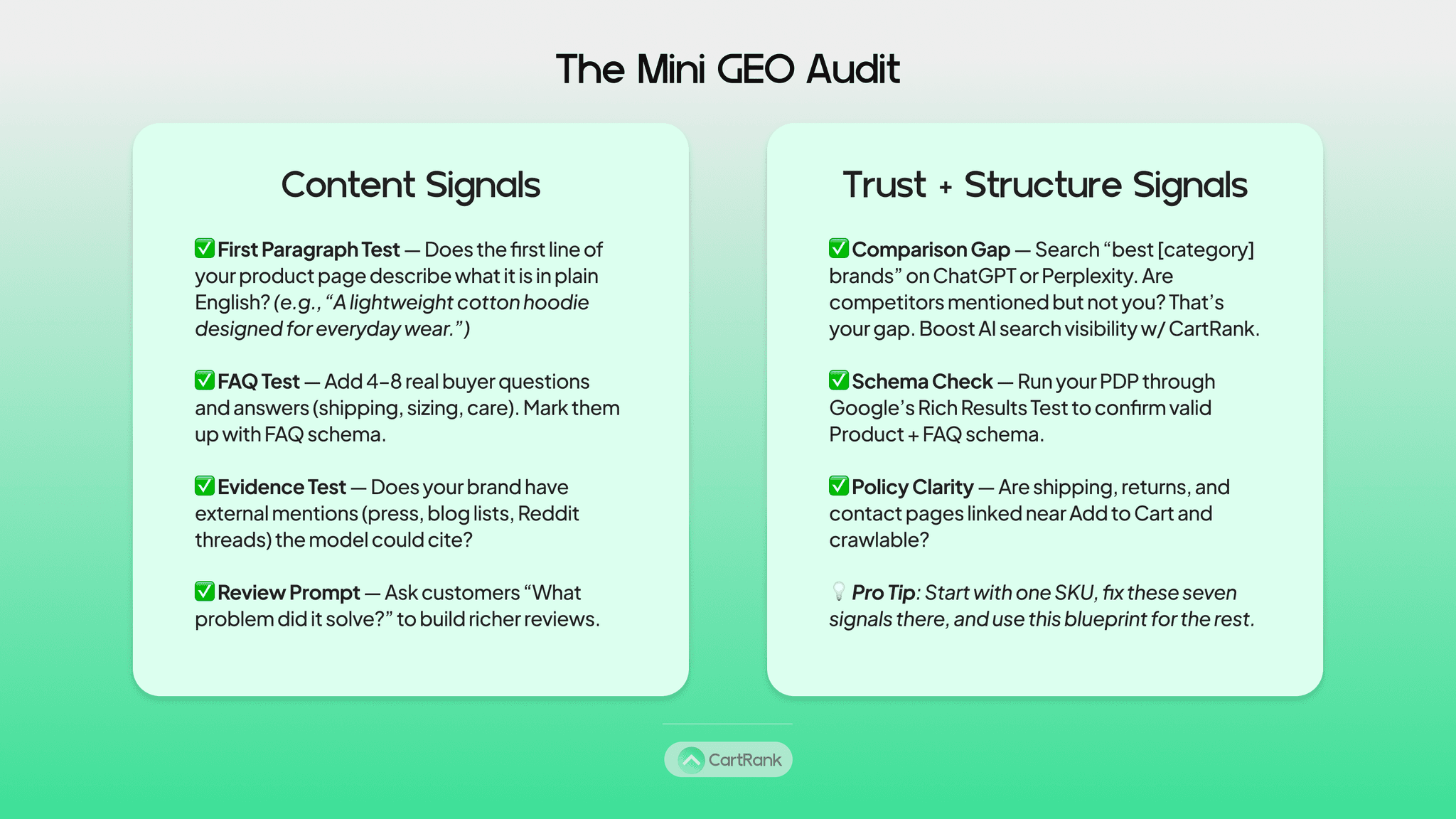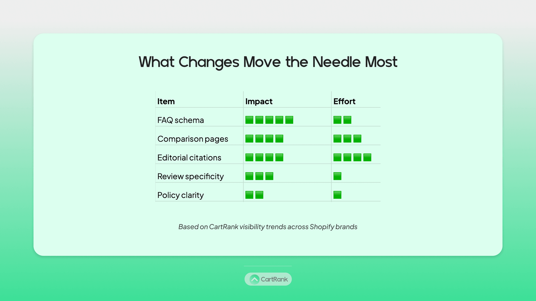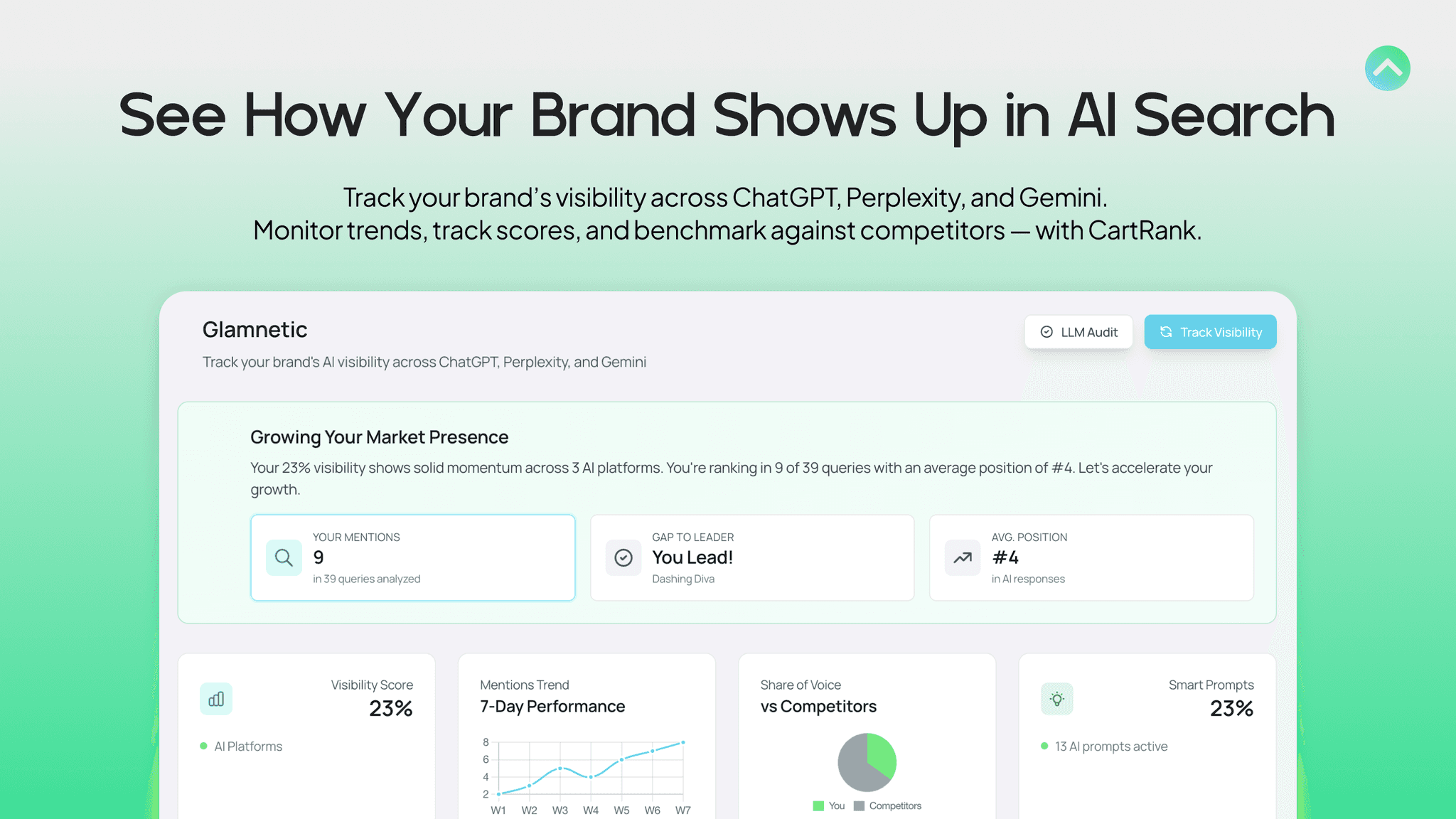 Track how your Shopify brand and competitors show up on ChatGPT, Perplexity, and Gemini — and get insights to improve visibility.